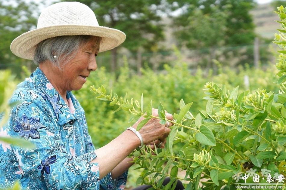 “現(xiàn)在是采摘金銀花的時(shí)節(jié),家里比較閑,到基地來(lái)干點(diǎn)零活,一天摘十五斤左右,能掙七八十塊錢(qián)。”隴城鎮(zhèn)鳳尾村村民王亞蘭告訴記者。
