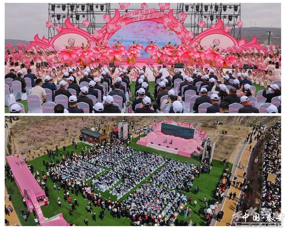 每年四月,萬畝桃花競相開放,粉紅鮮麗、宛如云霞、動人心弦。秦安縣每年都會在此舉辦盛大的桃花會開園儀式,吸引大量游客前來目睹這一盛景!疤摇弊硭脑,可謂是漫山遍野桃花香,蜂飛蝶舞游人醉,真正做到了以花為媒,以花會友。