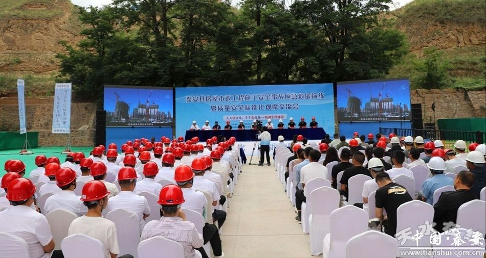 6月27日,秦安縣市政工程施工安全事故應(yīng)急救援演練暨質(zhì)量安全標(biāo)準(zhǔn)化觀摩活動在秦安縣保障性租賃住房建設(shè)項(xiàng)目施工現(xiàn)場舉辦?h委常委、常務(wù)副縣長張俊義,縣住建局、應(yīng)急管理局、消防救援大隊、錦安城鄉(xiāng)投資公司等有關(guān)單位負(fù)責(zé)人,甘肅八建集團(tuán)領(lǐng)導(dǎo)班子成員,以及秦安縣在建工程項(xiàng)目負(fù)責(zé)人、甲方代表、項(xiàng)目經(jīng)理、總監(jiān)等共計300余人參加演練觀摩活動。