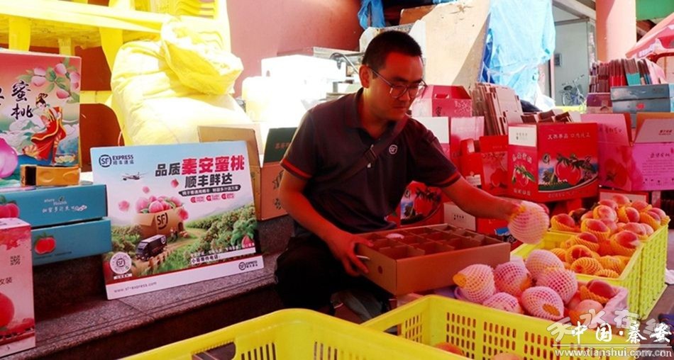 在秦安縣夜市巷蜜桃攤點(diǎn)前,順豐速運(yùn)業(yè)務(wù)員鄭科正細(xì)心為客戶挑選著蜜桃,“順豐已經(jīng)入駐各個(gè)攤點(diǎn),保障秦安蜜桃發(fā)運(yùn)。蜜桃前期,我們每天的發(fā)件量就是上百件,等蜜桃大量上市每天發(fā)件量就會(huì)多達(dá)千件!编嵖埔贿厡⒕艏(xì)選好的蜜桃進(jìn)行雙網(wǎng)套袋、裝箱、密封、貼單等工作,一邊告訴記者:“這些蜜桃快件發(fā)往全國各個(gè)地方都有,一般省內(nèi)次日就能抵達(dá),省外特快2-3天也能到達(dá)!