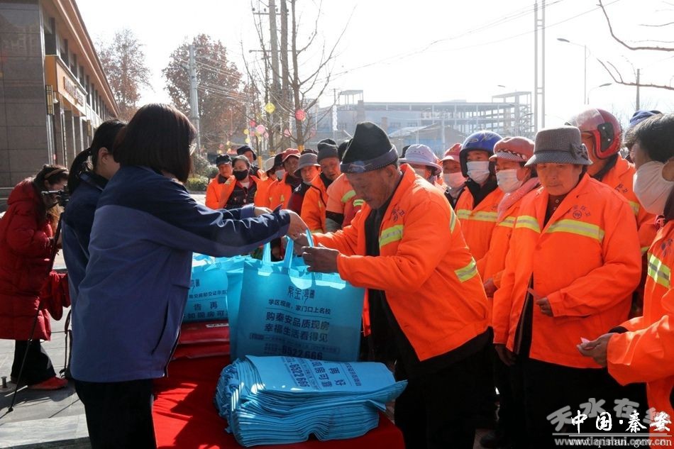 秦安縣紫金灣營銷中心銷售經(jīng)理李亞鵬說:“在新春佳節(jié)來臨之際,能為環(huán)衛(wèi)工人這個群體,城市的美容師做一個小小的一個貢獻,是我們義不容辭的義務(wù)。希望通過實際行動,讓他們感受到社會的關(guān)愛與尊重,這也是我們企業(yè)應(yīng)盡的社會責(zé)任!