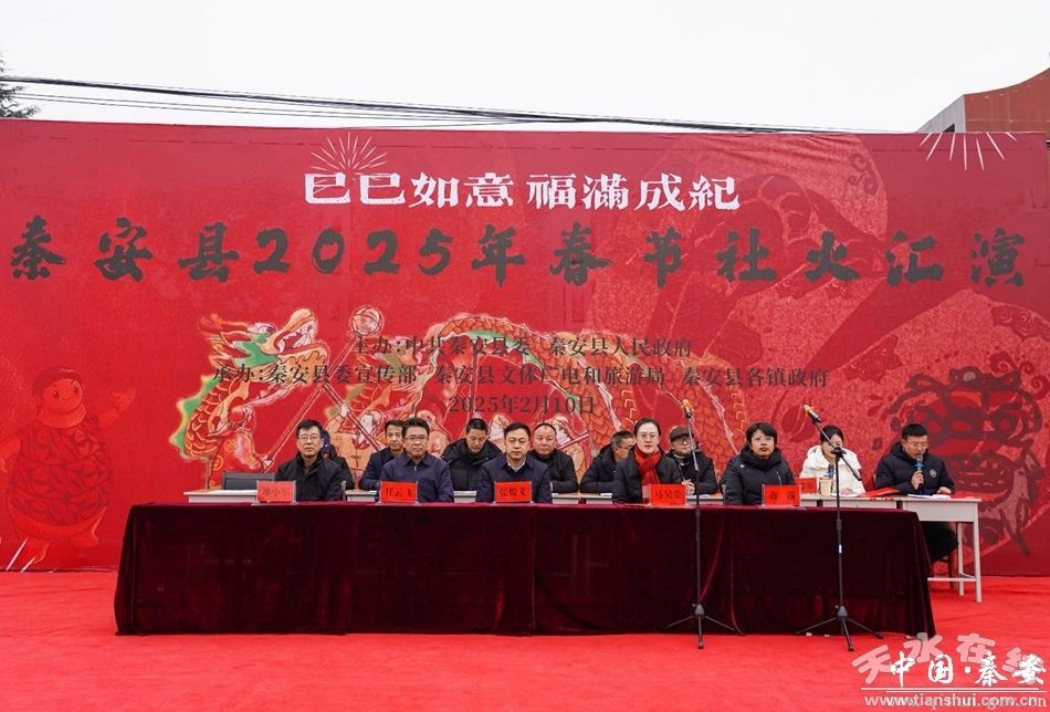 蔣露在致辭中說,秦安縣2025年春節(jié)社火匯演活動(dòng),既是縣委、縣政府貫徹落實(shí)習(xí)近平文化思想,滿足人民群眾日益增長的精神文化需求的生動(dòng)實(shí)踐,也是全縣開展文化惠民活動(dòng),提升群眾文化獲得感和幸福感的重要內(nèi)容。各參演隊(duì)伍用精彩紛呈的社火表演共賀乙巳蛇年新春佳節(jié),用高臺(tái)戰(zhàn)鼓奏響媧鄉(xiāng)兒女的昂揚(yáng)斗志,“舞”出幸福生活好光景,“!背鰝鹘y(tǒng)民俗文化范,為全縣人民獻(xiàn)上一道獨(dú)具地域特色的“文化盛宴”。