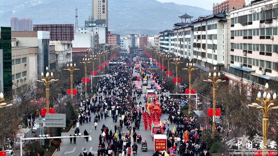 春意未萌、寒意料峭。當(dāng)日,秦安縣城鑼鼓喧天、歡聲鼎沸,成千上萬名城鄉(xiāng)群眾帶著滿心的期待從四面八方早早趕來,搶占最佳觀賞位置。爭相觀看這一最接地氣、最具年味的民間藝術(shù)表演。這場活動(dòng)不僅是民俗狂歡,更是秦安展示發(fā)展成果、展望未來的重要窗口。