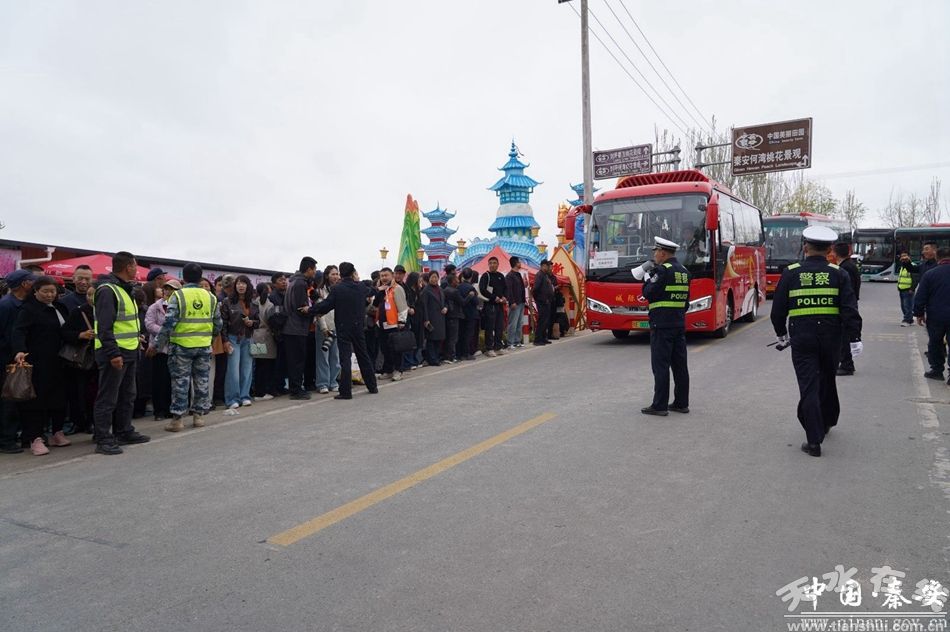 為了讓廣大游客安心賞花、盡興游玩,秦安縣公安民警全程堅守崗位,筑牢游園安全防線!盀槿ΡU锨匕蔡一〞樌e辦,我們提前部署安保警力,全面做好現(xiàn)場秩序維護、人流疏導、安全隱患排查等工作,全力守護現(xiàn)場群眾游玩安全,為此次桃花會營造安全、有序、和諧的現(xiàn)場環(huán)境,確保大家安心賞花、盡興游玩。”民警馬剛告訴記者。