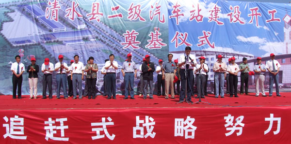 二期工程將修建一幢建筑面積3000平方米的貨運(yùn)綜合大樓,設(shè)有2160平方米倉庫、990平方米的貨棚,5000平方米的貨物堆場,可為200多輛貨運(yùn)車輛提供配貨及信息服務(wù)。天水市副市長蕭菡在奠基儀式上對汽車站的建設(shè)給予了高度的評價。她說,客運(yùn)汽車站的建成使用,將極大改善清水縣的交通運(yùn)輸條件,完善城鄉(xiāng)公共服務(wù)功能,滿足城鄉(xiāng)及周邊群眾交通運(yùn)輸需求,徹底解決清水縣交通運(yùn)輸業(yè)發(fā)展中沒有多功能大型車站的問題,根除城區(qū)客貨運(yùn)輸車輛亂停亂靠、占道為市的局面,真正實現(xiàn)“車進(jìn)站,人歸點”城區(qū)交通秩序井然的客運(yùn)市場新局面。目前,公司采用招商引資的方式于2008年8月1日與天水佰業(yè)建筑工程公司正式簽約,聯(lián)手合作啟動實施以侯車綜合大樓為主體的汽車站一期工程建設(shè),目前已完成了一層基礎(chǔ)澆注工作,現(xiàn)已進(jìn)入主體施工階段,已投入引進(jìn)建設(shè)資金達(dá)200多萬元。