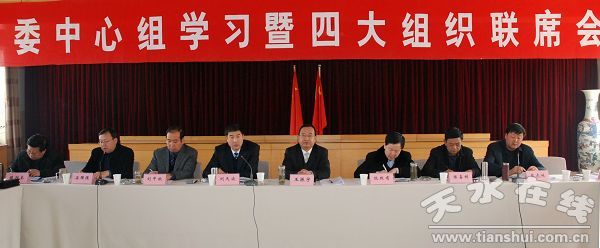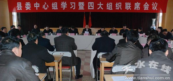 2月22日,清水縣委書記王振宇主持召開縣委中心組學習暨四大組織聯(lián)席會,學習中央、省上有關文件精神,安排部署當前重點工作。縣四大組織全體在家縣級干部,縣直相關部門負責同志參加了會議。