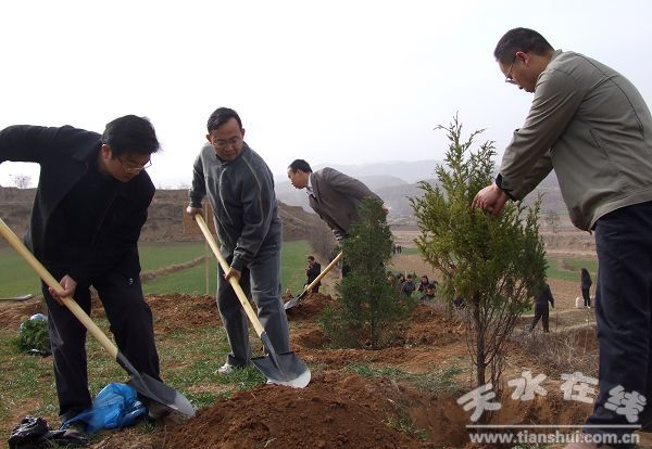 在縣城北山——三橋溝方圓320 畝的荒山上,縣委書記王振宇,縣委副書記、縣長劉天波,縣委常委、紀(jì)委書記妥國保,縣委常委、宣傳部長張秀麗等縣四大組織領(lǐng)導(dǎo)和縣直機(jī)關(guān)六大口的干部職工及城區(qū)部分中學(xué)生協(xié)同作戰(zhàn),栽植塔柏。