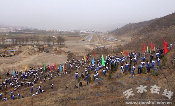。ㄇ逅h委外宣辦 朱建峰 楊兆康)3月25日,清水縣縣直機(jī)關(guān)六大口3000余名干部職工和城區(qū)2000多名中學(xué)生上山開展義務(wù)植樹活動(dòng),綠化荒山,共建生態(tài)家園。