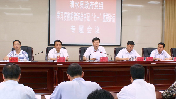 7月13日,清水縣政府黨組召開(kāi)會(huì)議,專(zhuān)題學(xué)習(xí)貫徹胡錦濤總書(shū)記在慶祝中國(guó)共產(chǎn)黨成立90周年大會(huì)上的重要講話精神。