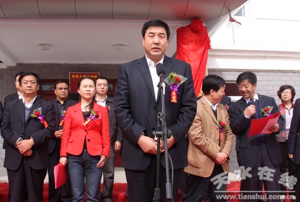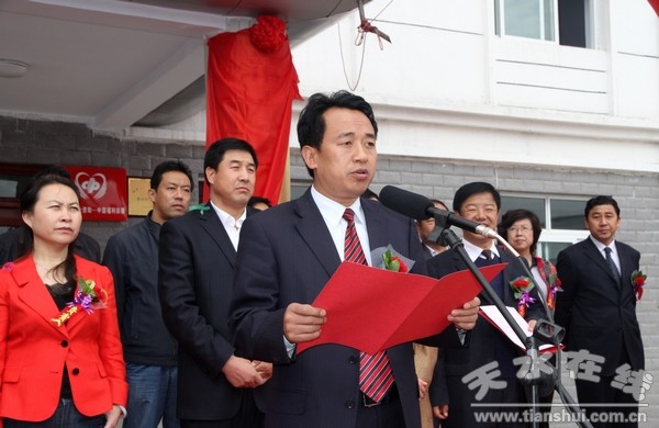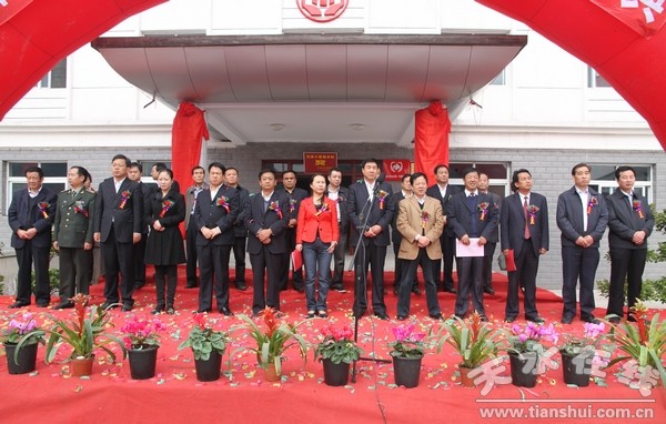 (市民政局副局長、市老齡辦副主任吳曉萍,縣委書記劉天波為清水縣中心敬老院揭牌)