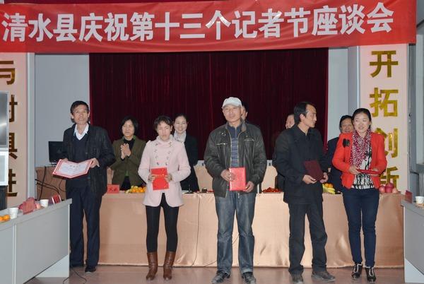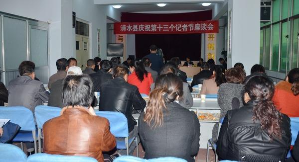 11月6日,清水縣召開(kāi)第十三個(gè)記者節(jié)座談會(huì)。清水縣委書(shū)記劉天波,縣人大常委會(huì)主任阮珠有,縣委常委、宣傳部長(zhǎng)張秀麗,縣人大常委會(huì)副主任宋宏亮,縣政協(xié)副主席曹鳳娥出席座談會(huì),外宣辦、政府信息中心、縣電視臺(tái)全體人員參加了座談會(huì)。