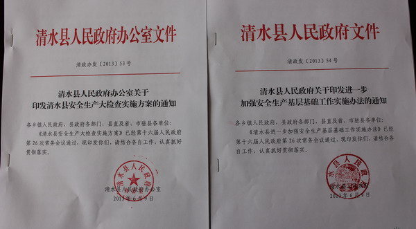 會議傳達(dá)學(xué)習(xí)了近日習(xí)近平總書記、李克強(qiáng)總理等中央領(lǐng)導(dǎo)同志關(guān)于安全生產(chǎn)工作的重要批示和國務(wù)院常務(wù)會議、全國、全省、全市安全生產(chǎn)電視電話會議精神,以及省委書記王三運(yùn)、市委書記馬世忠同志的重要批示,分析全縣當(dāng)前安全生產(chǎn)面臨的形勢,研究制定針對性措施,有效防范和堅(jiān)決遏制重特大事故發(fā)生,促進(jìn)全縣安全生產(chǎn)形勢持續(xù)穩(wěn)定好轉(zhuǎn)。會議還通過了《清水縣安全生產(chǎn)大檢查實(shí)施方案》以及《清水縣關(guān)于進(jìn)一步加強(qiáng)安全生產(chǎn)基層基礎(chǔ)工作實(shí)施辦法》。