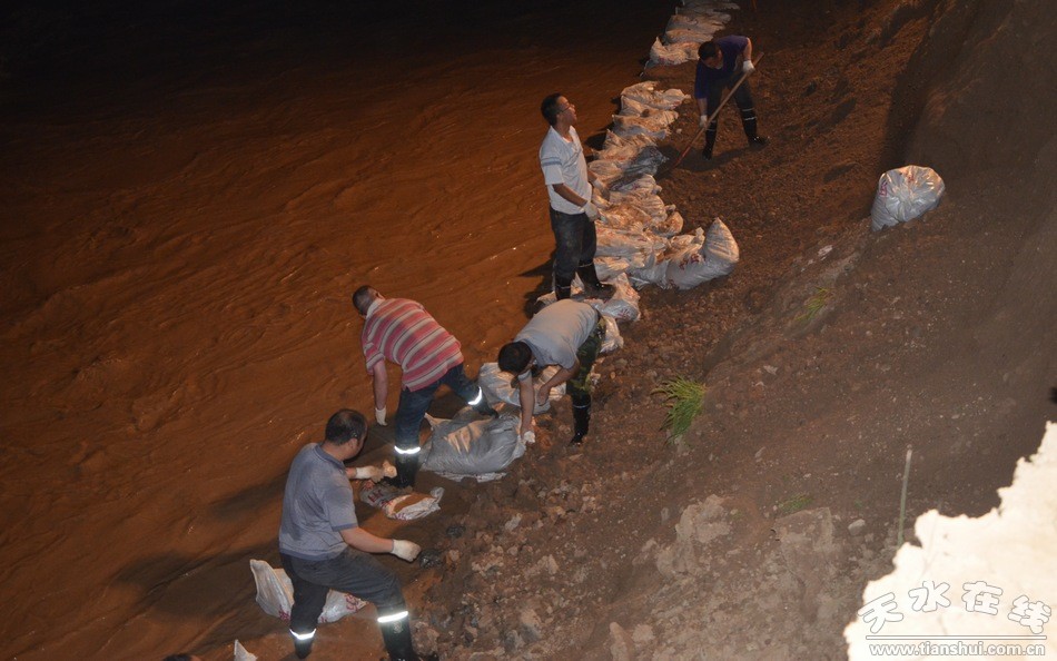 7月24日夜間,清水縣又降大雨,為了防止洪水沖垮河堤再次引發(fā)重大災(zāi)害,避免出現(xiàn)河堤崩塌險情,防止次生災(zāi)害發(fā)生,清水縣干部職連夜冒雨奮戰(zhàn)在防汛搶險一線,對已經(jīng)出現(xiàn)河堤坍塌和重大隱患的南道河、牛頭河、白駝河、后川河、樊河等河堤危險段,實施晝夜搶修,積極開展引水分流、河堤加固、河道疏浚工程,加快搶險救災(zāi)進度,確保行洪安全。