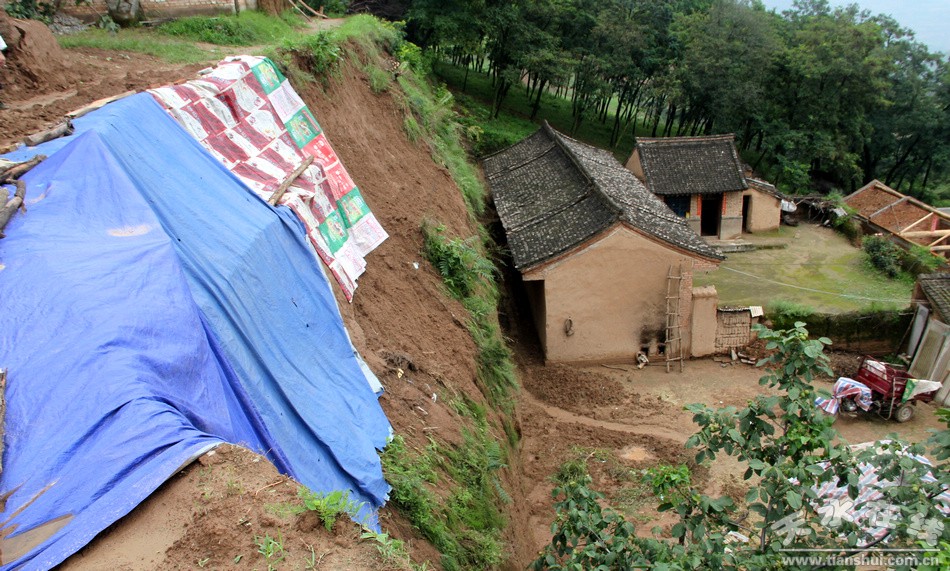 清水縣豐望鄉(xiāng)甘澇池村丁環(huán)嶺多處出現(xiàn)滑坡垮塌 村民有家不敢回