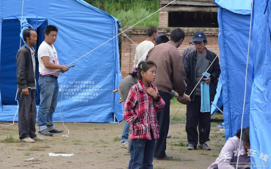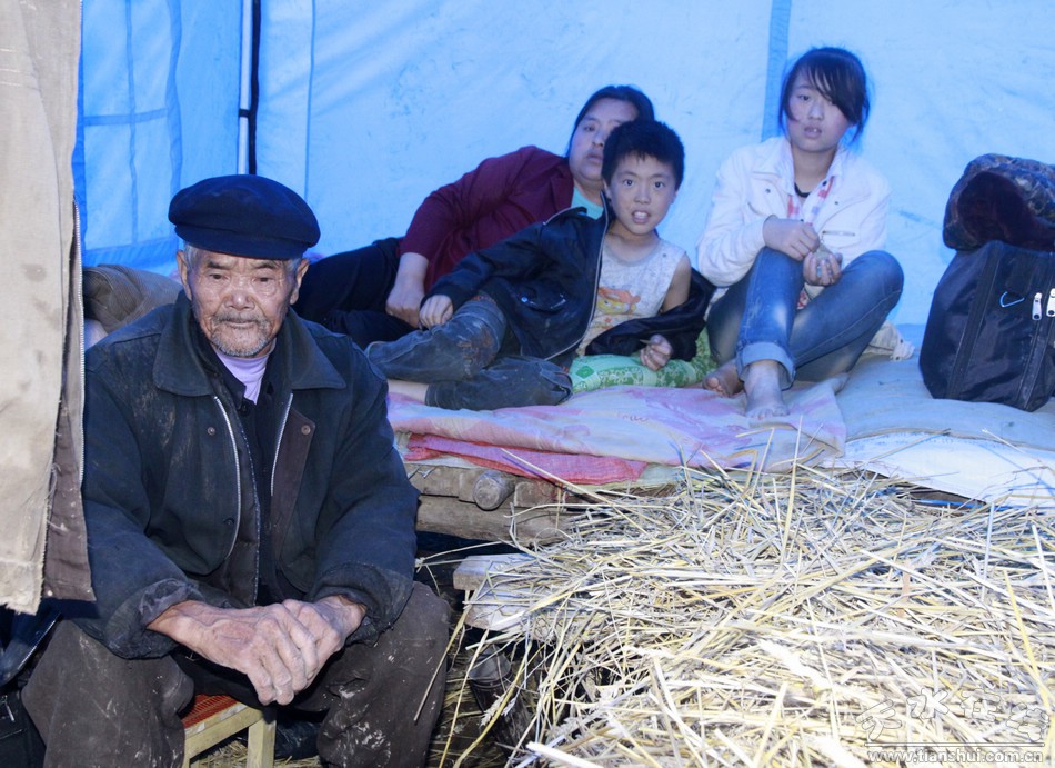 (丁環(huán)嶺群眾臨時(shí)住在救災(zāi)帳篷)
