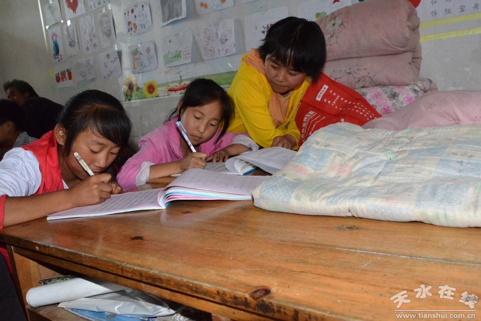 (在豐望鄉(xiāng)槐楊村黑莊里自然村受災(zāi)群眾臨時(shí)安置點(diǎn),孩子們以學(xué)校為家)