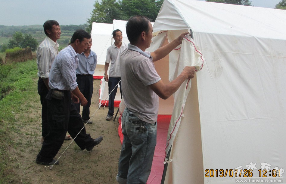 (永清鎮(zhèn)義坊村搭建帳篷安置受災群眾)