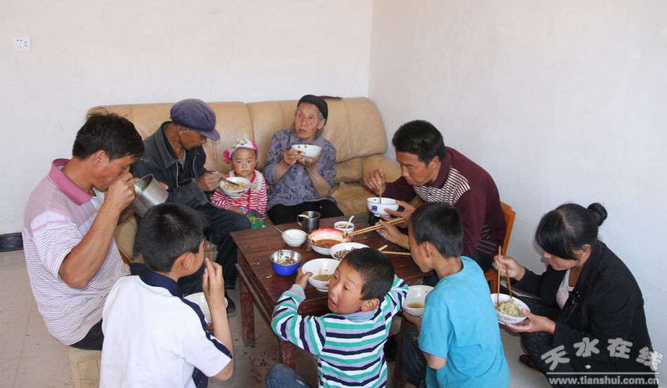 (草川鋪鄉(xiāng)火石村村民宋金財在親戚家吃午飯)
