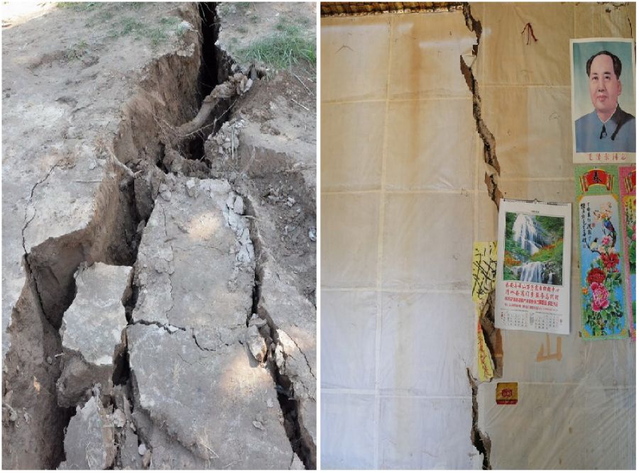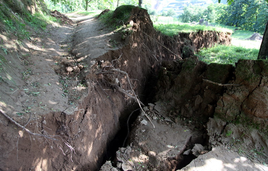 (夜明村曹王自然村山體滑坡,出現(xiàn)大面積裂縫)