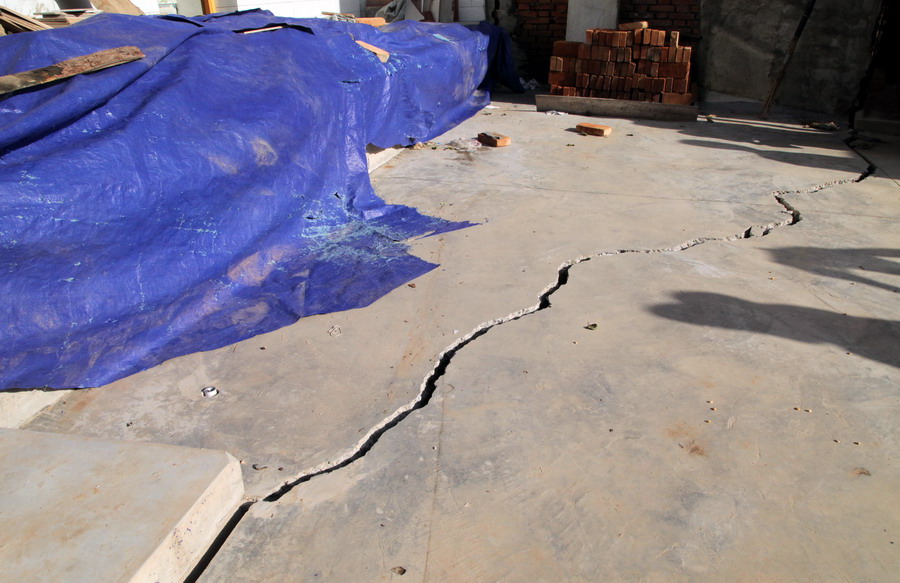 (夜明村曹王自然村山體滑坡,山體的大裂縫延伸到村民院落)