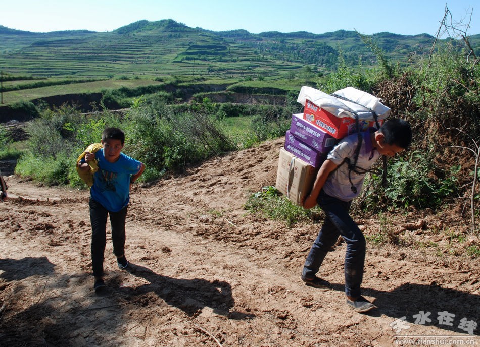 (搬運(yùn)愛心物資的孩子)
