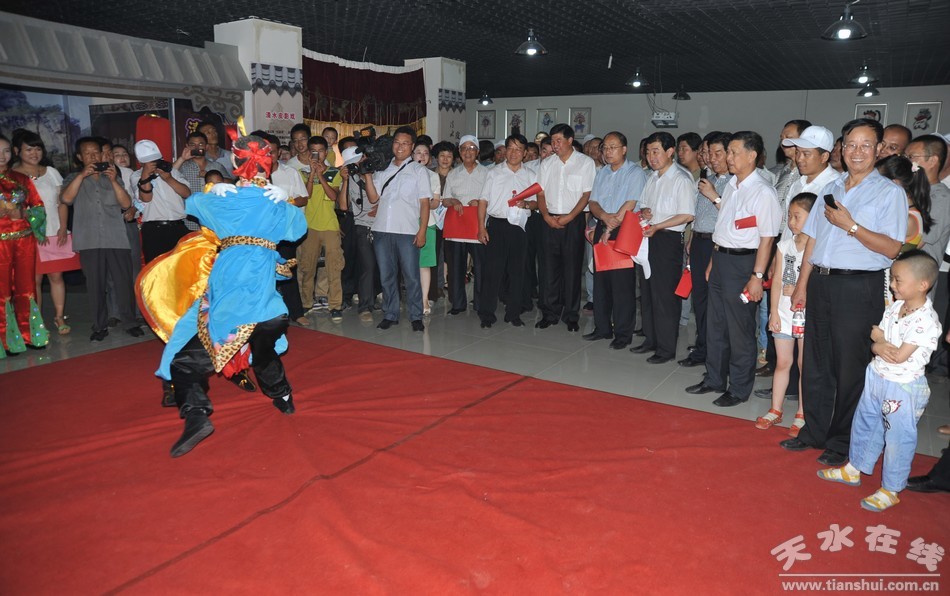 8月5日,出席敦煌行.絲綢之路國際旅游節(jié)第四屆軒轅文化旅游節(jié)暨清水溫泉消夏養(yǎng)生旅游節(jié)的領(lǐng)導(dǎo)、嘉賓及社會(huì)各界人士現(xiàn)場參觀了清水發(fā)展成就展。展館內(nèi)人頭攢動(dòng),熱鬧非凡,一幅幅展示清水發(fā)展巨變和秀美風(fēng)采的畫卷倍受關(guān)注,尤其是清水皮影、木人摔跤、道教音樂、清水剪紙、清水小曲、“回娘家”表演等非物質(zhì)文化展演吸引游人駐足觀看。