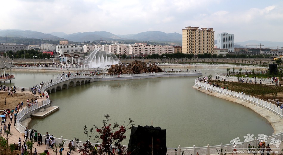 清水縣軒轅湖公園暨水舞廣場位于清水縣牛頭河北岸,紅崖觀西側(cè),總占地面積8.7萬平方米。該公園是全縣城鄉(xiāng)群眾健身休閑、文化娛樂、公共活動的好去處,內(nèi)有溯源橋、始祖橋、中華橋、九州橋、龍?jiān)礃?座橋梁和環(huán)湖路構(gòu)成了瀏覽通道,設(shè)計(jì)有雕塑、噴泉、文化柱、景石、水榭、塑石硤谷、涼亭、假山、水車等景觀元素,建有竹林、美人蕉園、玉蘭園、牡丹園、月季園,湖體呈“龍”字和湖水入口“中”字造型,堆砌的軒轅丘山體,把軒轅黃帝與中華文化有機(jī)結(jié)合,體現(xiàn)了清水作為人文始祖軒轅黃帝出生地深厚的文化底蘊(yùn)。軒轅湖公園及水舞廣場的建成使用,在完善縣城功能,提升城市品位,改善城市面貌,豐富市民生活,加快宜居環(huán)境城市建設(shè)都具有十分重要的意義。