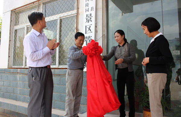 (張秀麗、宋宏亮、何敬忠、曹鳳娥共同為趙充國(guó)陵園景區(qū)管理局揭牌)