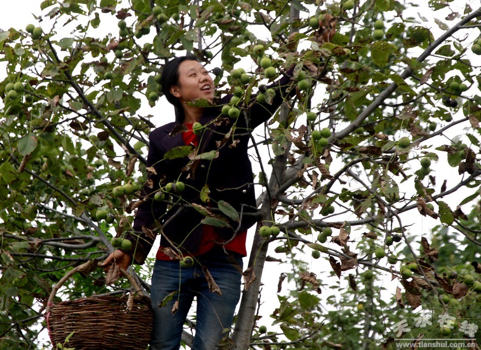 (清水農(nóng)民采摘核桃 作者:劉華)