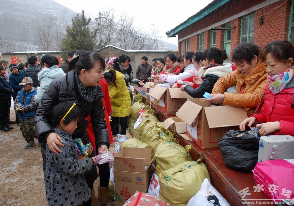 11月24日,清水普降大雪,在清水縣兒基會(huì)和“愛心使者”張金霞的聯(lián)系下,麥積區(qū)啟星幼兒園廣大師生和家長(zhǎng),冒著大雪,將價(jià)值一萬(wàn)余元的物資送到了山門鎮(zhèn)劉崖小學(xué)和南山小學(xué)孩子的手中,讓大山里的孩子感受到了冬日里的溫暖。