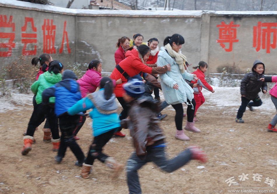 由于下雪路滑,原本半個(gè)多小時(shí)可以到的,運(yùn)送物資的車輛和愛心人士用了兩個(gè)多小時(shí)才到了山門鎮(zhèn)劉崖小學(xué)。山門鎮(zhèn)中心小學(xué)劉崖教學(xué)點(diǎn)現(xiàn)有兩個(gè)教學(xué)班,在校學(xué)生只有17人,老師也只有兩名,學(xué)校教學(xué)設(shè)施簡(jiǎn)陋,環(huán)境惡劣。孩子們看到城里的小朋友來看他們,他們的臉上露出了微笑。在啟星幼兒園的師生的引導(dǎo)下,他們開始做互動(dòng)游戲,玩起了老鷹捉小雞,這雖然是一個(gè)很簡(jiǎn)單的游戲,但是讓這樣一個(gè)簡(jiǎn)陋的操場(chǎng)多了一份溫暖,給這17名孩子帶來了心里上最大的溫暖。當(dāng)啟星幼兒園的老師和家長(zhǎng)把帶來的學(xué)習(xí)用品以及過冬的棉衣護(hù)手霜等分發(fā)給這里的學(xué)生時(shí),每位學(xué)生和家長(zhǎng)臉上露出了喜悅繁的笑容,心里暖洋洋的。
