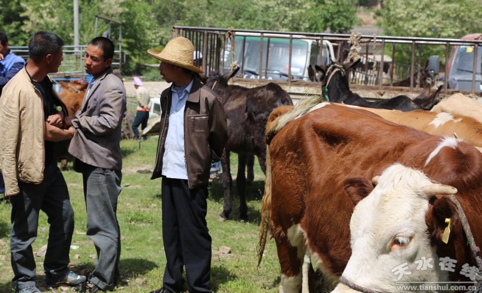 據(jù)悉,每年夏季物資交流會(huì)活畜交易自農(nóng)歷四月二十八開始,前后持續(xù)十余天,交易種類主要有騾、馬、驢、牛、羊等家畜。今年日平均交易量數(shù)約2600多頭(匹、只),日平均交易額近300多萬元?蜕讨饕獊碜陨綎|、河北、河南、陜西、寧夏,甘肅平?jīng)觥㈦]南及天水等地,交易范圍廣、規(guī)模大。