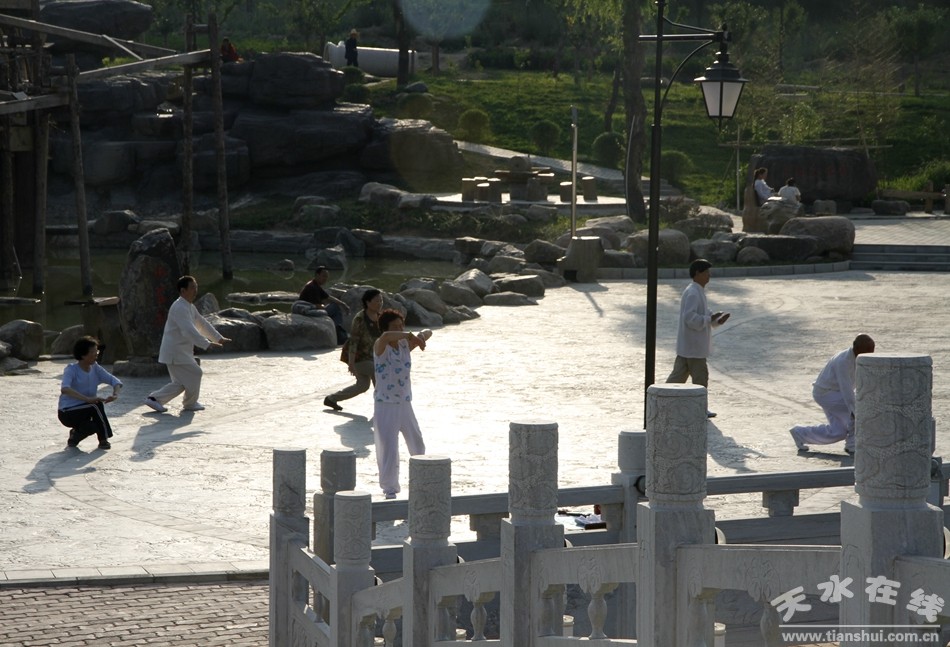 清晨時(shí)分,軒轅湖似未臨妝梳洗的女子,還待煙嵐散去,一湖碧水柔美纏綣地慢慢蘇醒,微露綠波盈盈,粼光細(xì)細(xì)的笑容;湖畔楊柳依依,微風(fēng)徐來(lái),令人心明意凈,有著新一天開始時(shí)的無(wú)限舒展。一忽兒間,波影映出天光,湖水妝容淡抹明麗起來(lái)。煦暖的陽(yáng)光照著靜默的湖水,三五成群的鳥兒自由自在地游弋、追逐,打破了湖面的寂靜。一切都那么明媚,那么安靜,如詩(shī)如夢(mèng)般。陸續(xù)到來(lái)晨練的人們,輕踏在柳蔭抽象而動(dòng)感的畫幅中,他們迎著暖陽(yáng),有的在悠閑散步,有的在舞劍練功,那份怡然,那種柔美,動(dòng)靜之間的和諧統(tǒng)一,美妙絕倫。人們體會(huì)的是一種恬靜,一種情趣,一種快樂(lè),也給這綠色的湖畔融入了生動(dòng)鮮活的情致。