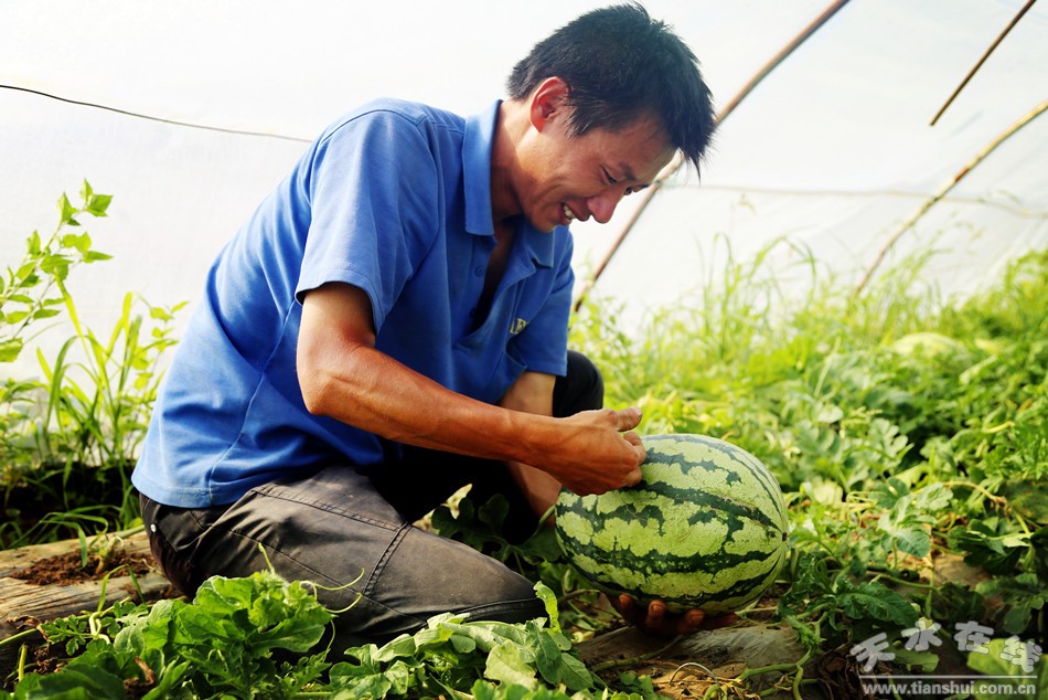 (馬溝菜農(nóng)程建云采摘成熟的西瓜)