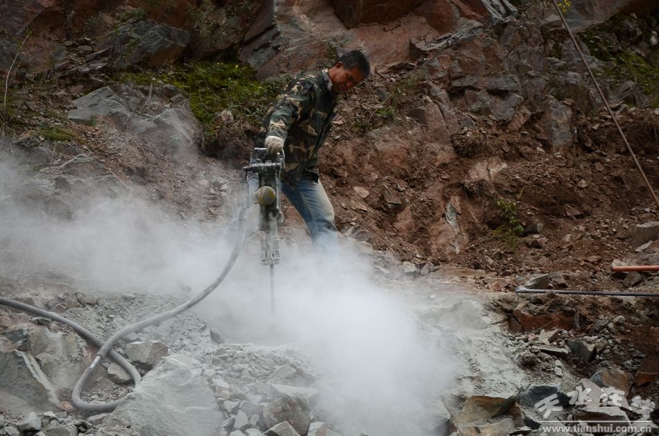 武警交通部隊(duì)自進(jìn)駐甘肅省清水縣演練現(xiàn)場以來,各項(xiàng)前期演練準(zhǔn)備工作已全面展開,部隊(duì)十余臺(tái)機(jī)械、百余名官兵夜以繼日鏖戰(zhàn)在演練現(xiàn)場。然而,兩塊從山體延伸下來的巨石阻礙了施工進(jìn)度,如果用鑿巖機(jī)進(jìn)行破碎清除,需耗時(shí)半個(gè)月時(shí)間,正式演練時(shí)間在即,如何解決這個(gè)難題?讓官兵們頭疼不已,經(jīng)過反復(fù)現(xiàn)場勘察、會(huì)議研討,最終決定采用爆破方式進(jìn)行清障,加快施工進(jìn)度。