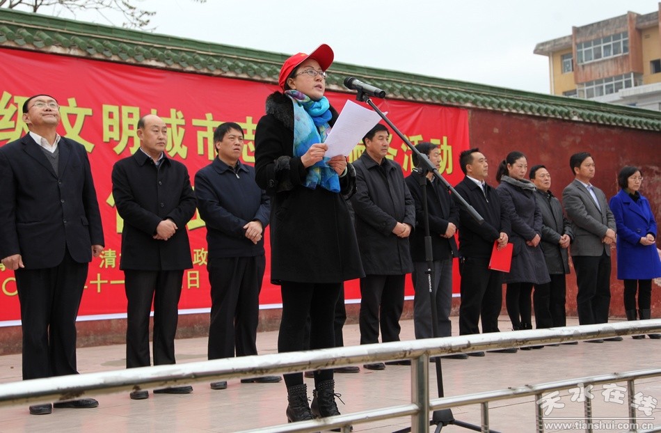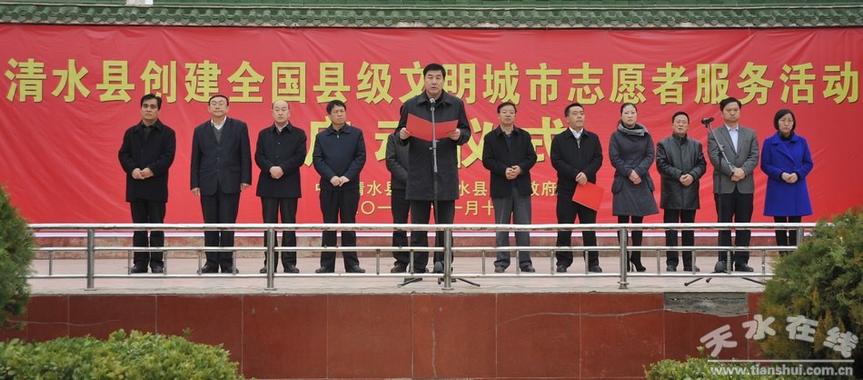 清水縣委書記劉天波在啟動儀式上指出,創(chuàng)建全國縣級文明城市,是縣委、縣政府著眼優(yōu)化發(fā)展環(huán)境、提升清水知名度、推進城市文明向更高層次邁進的重要舉措。全縣廣大志愿者積極響應(yīng)縣委、縣政府號召,迅速行動,組建了20支志愿者服務(wù)工作隊參與創(chuàng)建活動,這對于動員全縣上下多措并舉共創(chuàng)共建,深化社會公益活動,必將發(fā)揮示范帶頭作用,產(chǎn)生良好的社會影響。