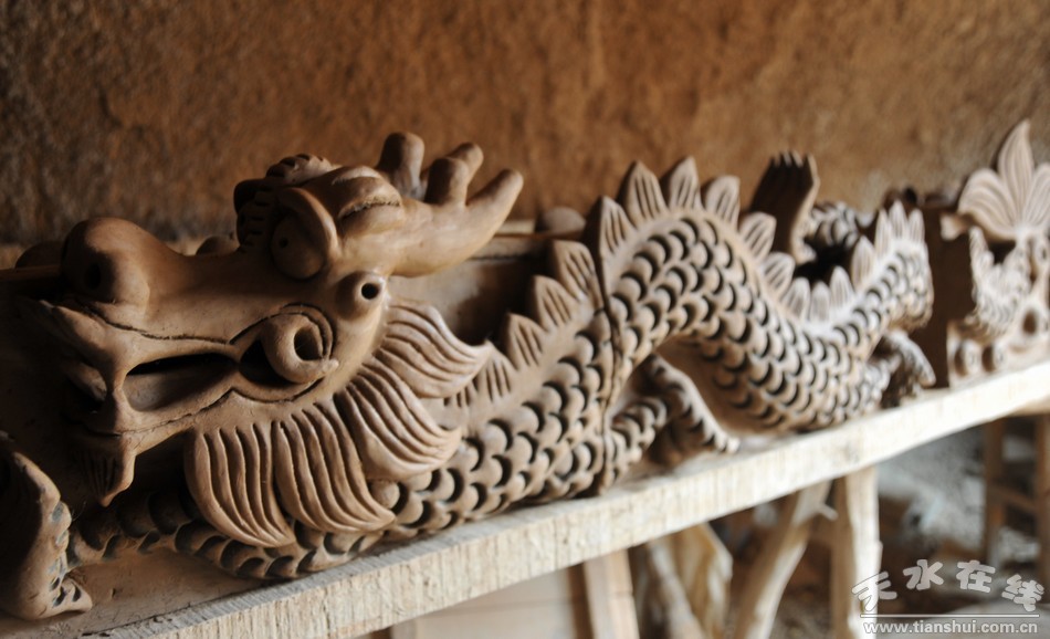在清水縣永清鎮(zhèn)瓦溝村,有著1000多年歷史并流傳至今的脊獸捏制民間傳統(tǒng)手工藝。在該村附近山上的一個窯洞里,記者見到捏脊藝人袁小紅,他告訴記者:制作一個好的脊獸要嚴格把握好選土和泥、制作胚子、細心捏制、烘烤暴曬、精心打磨、耐心燒制等好幾道工序,才能成功。一塊泥巴,經(jīng)過他的把玩,漸漸變成紋理清晰、栩栩如生的神獸,顯得惟妙惟肖。