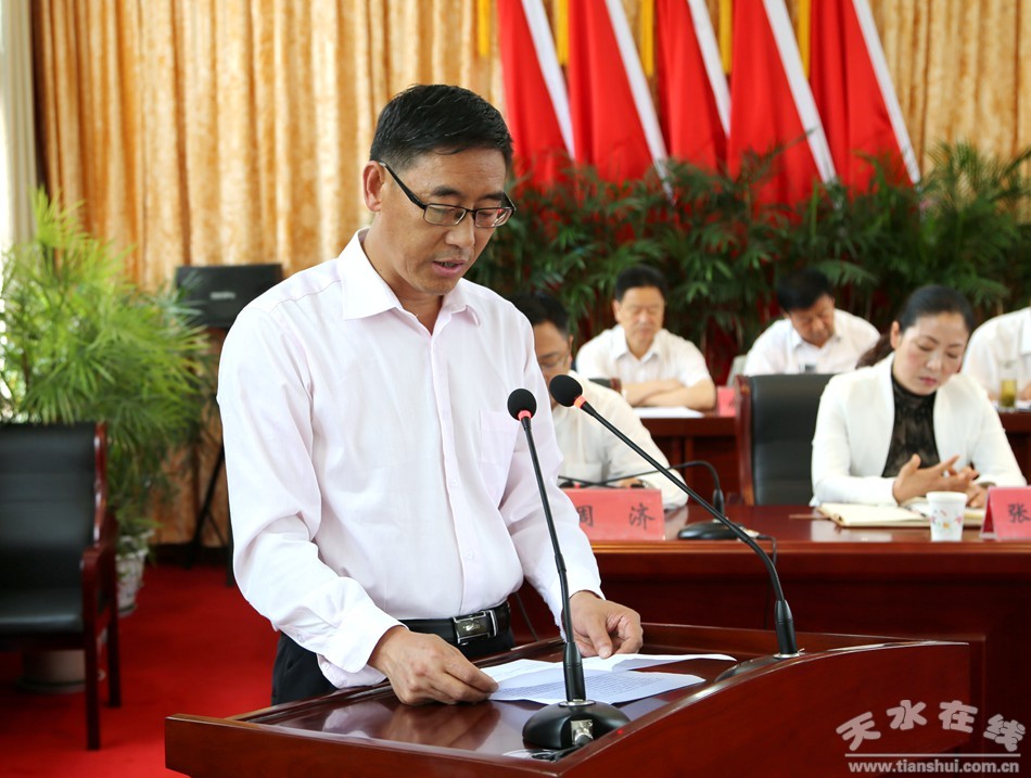 劉天波說(shuō),緊跟黨的前進(jìn)步伐,我縣也走過(guò)了不平凡的發(fā)展歷程。1943年,我縣就有了黨的地下組織,為推動(dòng)全縣解放事業(yè)做了艱苦卓絕的斗爭(zhēng)。建國(guó)以后,特別是改革開(kāi)放以來(lái),在黨的正確領(lǐng)導(dǎo)下,歷屆縣委團(tuán)結(jié)帶領(lǐng)廣大黨員、干部群眾發(fā)揚(yáng)自力更生、艱苦奮斗的優(yōu)良傳統(tǒng),頑強(qiáng)拼搏,實(shí)干創(chuàng)業(yè),使清水大地發(fā)生了翻天覆地的變化。縣十四次黨代會(huì)以來(lái),縣委充分發(fā)揮統(tǒng)攬全局、協(xié)調(diào)各方的領(lǐng)導(dǎo)核心作用,堅(jiān)持以黨的十八大和十八屆三中、四中全會(huì)以及習(xí)近平總書(shū)記系列重要講話精神為指導(dǎo),圍繞同步建成全面小康社會(huì)總目標(biāo),認(rèn)真落實(shí)“兩手抓兩手硬、雙促進(jìn)雙落實(shí)”的總要求,統(tǒng)籌推進(jìn)四大布局構(gòu)想和“5551”發(fā)展戰(zhàn)略,推動(dòng)全縣發(fā)展事業(yè)步入了快車道,全縣經(jīng)濟(jì)社會(huì)健康發(fā)展,人民生活明顯改善,黨風(fēng)政風(fēng)持續(xù)改進(jìn),黨的建設(shè)取得顯著成就,呈現(xiàn)出了心齊氣順、風(fēng)正勁足、和諧向上、蓬勃發(fā)展的良好局面。這些成績(jī)的取得,是縣委全面貫徹落實(shí)黨的各項(xiàng)方針政策,科學(xué)決策,正確領(lǐng)導(dǎo)的結(jié)果,是全縣各級(jí)黨組織和黨員、干部發(fā)揮先鋒模范作用,團(tuán)結(jié)帶領(lǐng)廣大群眾頑強(qiáng)拼搏、務(wù)實(shí)苦干的結(jié)果。