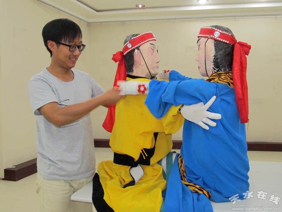 小伙子名叫緱紅斌,今年28歲,除了清水縣文化館工作人員這個(gè)公職身份外,他還是當(dāng)?shù)厍缚蓴?shù)的“非遺”傳承人和小有名氣的“草根明星”。