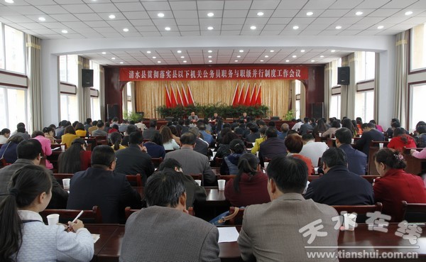 會上,縣委常委、組織部部長周濟作了講話;副縣長楊慶森宣讀了《清水縣機關建立公務員職務與職級并行制度實施方案》;相關人員還就縣級以下機關公務員職務與職級并行制度工作進行了業(yè)務培訓。
