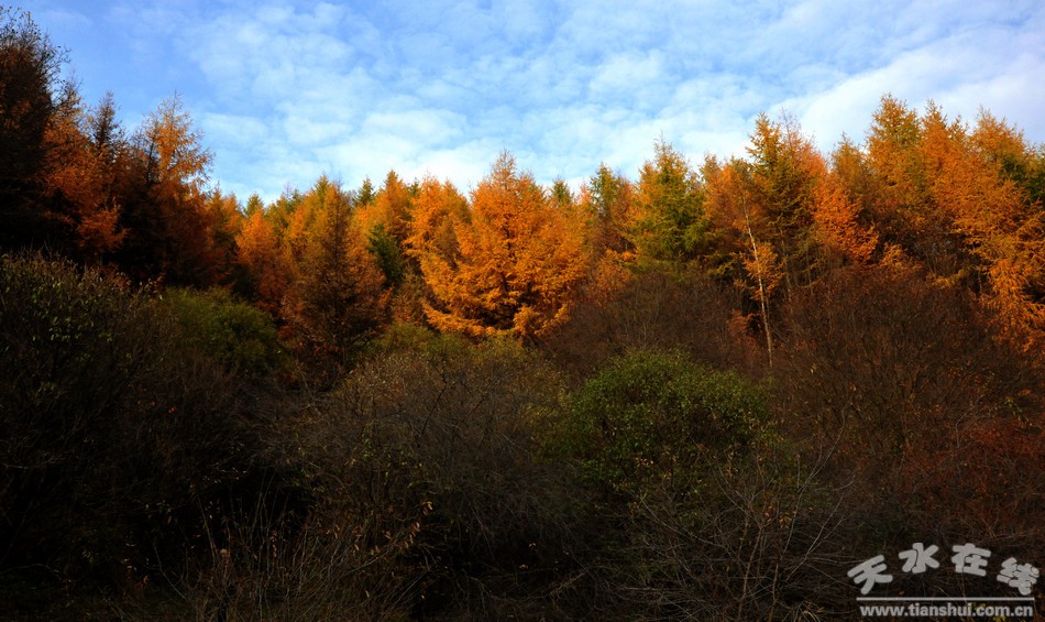 深秋時節(jié),天高云淡、氣溫宜人,清水縣山門百里林海一層層、一片片樹林被染成了淡紅色、金黃色、翠綠色,讓人觀看后十分悅目,成為了清水深秋的一處極致美景,吸引了很多游客來此地觀賞、旅游、散心。
