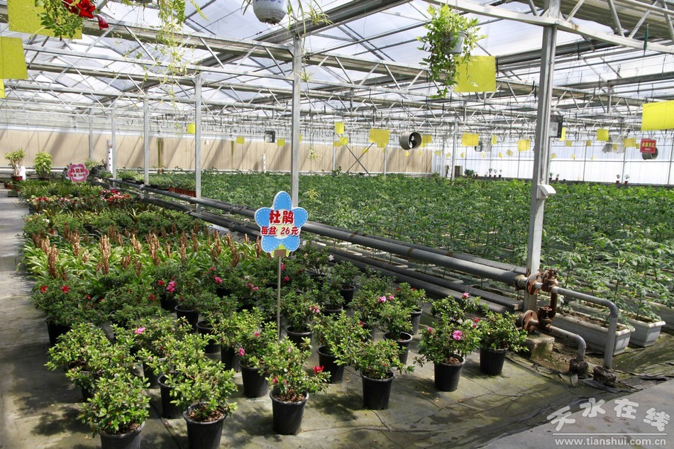 五連體連棟溫室以科技成果展示為主要功能,幾年來分別培育展示蘭花、仙客來、無土栽培櫻桃番茄、水果黃瓜、甜瓜等。在育苗方面,連棟溫室工廠化育苗區(qū)早春采用穴盤育苗新技術(shù),培育新品種蔬菜種苗900多萬株,滿足了全縣1500座普通塑料大棚種植的苗種需求,推廣各類蔬菜瓜果新品種35個。在精細(xì)蔬菜種植管理方面,推廣使用煙霧劑防治蔬菜病蟲害的新方法,降低了農(nóng)藥殘留率,提高了果蔬品質(zhì)。在科技成果展示方面,采用形式多樣的現(xiàn)代農(nóng)業(yè)展示方式,主要以三角立柱和A字架栽培為主體的立體栽植模式和以仿生螺旋柱、管道式深液流、平面淺液流為主體的水培栽植模式展示,種植特大南瓜、番茄樹、人參果樹、航茄樹、金橘樹,增加了科技展示載體,發(fā)揮了示范帶動、農(nóng)業(yè)觀光的作用。