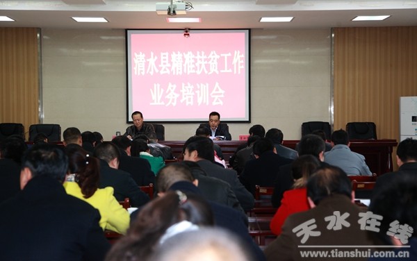 11月28日,清水縣召開(kāi)精準(zhǔn)扶貧工作業(yè)務(wù)培訓(xùn)會(huì),會(huì)議主要貫徹落實(shí)日前市、縣召開(kāi)的精準(zhǔn)扶貧緊急推進(jìn)會(huì)議精神,從工作程序、工作方法等方面進(jìn)一步統(tǒng)一思想,理清思路,推動(dòng)全縣精準(zhǔn)扶貧大數(shù)據(jù)平臺(tái)建設(shè)工作再上新臺(tái)階?h委副書(shū)記、縣政協(xié)主席王新強(qiáng),副縣長(zhǎng)秦永斌出席培訓(xùn)會(huì),縣委辦、政府辦負(fù)責(zé)人,“1+17”方案各責(zé)任部門(mén)、18鄉(xiāng)鎮(zhèn)負(fù)責(zé)人及業(yè)務(wù)骨干參加培訓(xùn)會(huì)。