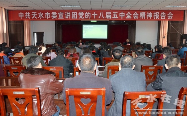 。ㄊ形v團成員裴根福為清水縣黨群口干部職工做十八屆五中全會精神專題輔導(dǎo)報告)