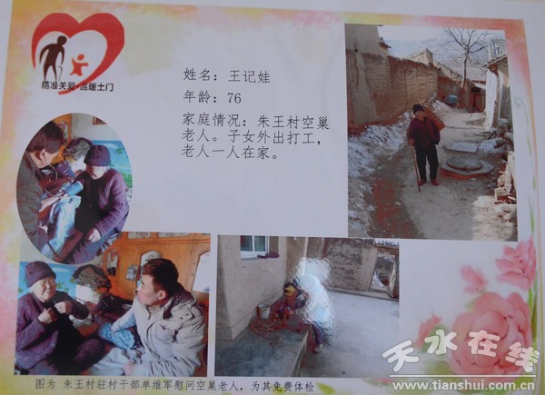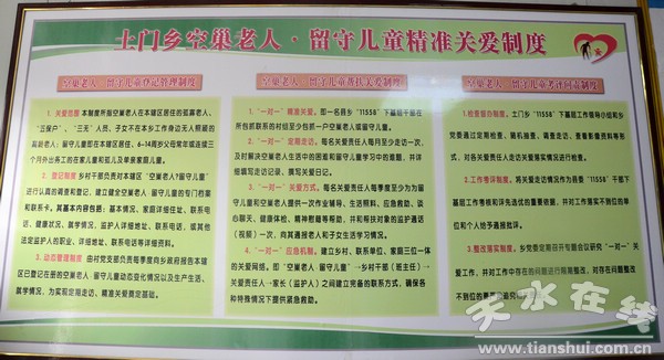 今年以來,土門鄉(xiāng)結合清水縣“11558”干部下基層活動,創(chuàng)造性的開創(chuàng)空巢老人·留守兒童“一冊一卡一制度”和“3+N”關愛模式,將全鄉(xiāng)227名空巢老人和177名留守兒童日常走訪關愛責任分解到縣鄉(xiāng)村228名黨員干部,實現(xiàn)了農(nóng)村空巢老人和留守兒童“一對一”精準關愛全覆蓋。活動開展以來來,縣鄉(xiāng)村關愛責任人先后走訪空巢老人和留守兒童1862人次、慰問物品936件、開展健康體檢25人次、“親情視頻”128人次,做到了“精準關愛與精準脫貧”的深度融合,從而拆除了干群之間的“分心墻”,達到了精準關愛。