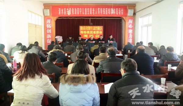1月29日,清水縣召開關愛救助農(nóng)村留守兒童空巢老人等特殊困難群體現(xiàn)場會,縣委常委、政法委書記王馬代,縣人大常委會副主任畢德祥,副縣長楊泉,縣政協(xié)副主席張永順,18鄉(xiāng)鎮(zhèn)、縣直各相關部門和單位主要負責人參加了現(xiàn)場會。