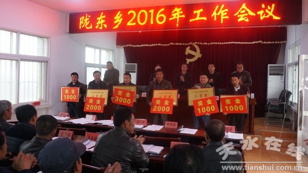 3月20日,清水縣隴東鄉(xiāng)召開2016年工作會(huì)議。會(huì)議回顧總結(jié)了2015年度各項(xiàng)工作,表彰獎(jiǎng)勵(lì)了工作成績(jī)突出的先進(jìn)個(gè)人和先進(jìn)集體;對(duì)2016年各項(xiàng)工作進(jìn)行了安排部署;鄉(xiāng)黨委、鄉(xiāng)政府與各村“兩委”班子負(fù)責(zé)人簽訂了2016年度綜合目標(biāo)管理責(zé)任書。鄉(xiāng)村兩級(jí)干部90多人參加了會(huì)議。