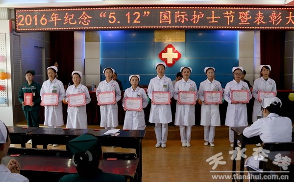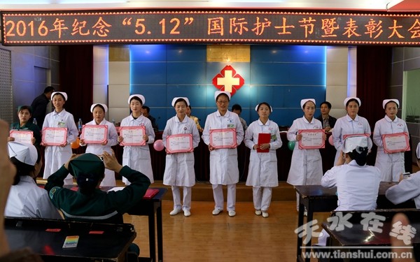 為弘揚(yáng)南丁格爾精神,促進(jìn)精神文明建設(shè),推動(dòng)醫(yī)務(wù)工作發(fā)展,展示醫(yī)務(wù)工作者的良好精神風(fēng)貌。5月9日,清水縣人民醫(yī)院隆重舉行紀(jì)念 “5.12國(guó)際護(hù)士節(jié)”暨表彰大會(huì) ,對(duì)多年來(lái)在護(hù)理崗位上愛崗敬業(yè)、甘于奉獻(xiàn)、積極進(jìn)取、做出優(yōu)異成績(jī)的 “優(yōu)秀護(hù)士”和“優(yōu)秀護(hù)理服務(wù)標(biāo)兵”進(jìn)行表彰?h衛(wèi)計(jì)局、縣人民醫(yī)院主要負(fù)責(zé)人及部分醫(yī)護(hù)人員參加慶祝大會(huì)。