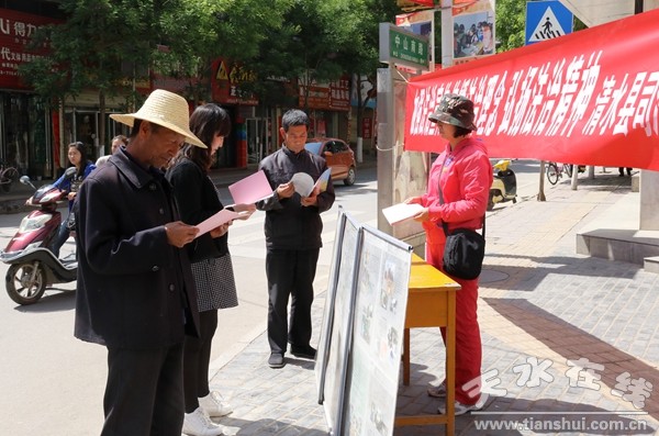 為全面貫徹落實(shí)省、市政法工作會議精神,深入推進(jìn)“平安清水”建設(shè)。5月16日,清水縣在城區(qū)開展反邪教宣傳月集中宣傳咨詢活動?h委常委、政法委書記王馬代深入現(xiàn)場同各相關(guān)職能部門工作人員一起參加了宣傳咨詢活動。