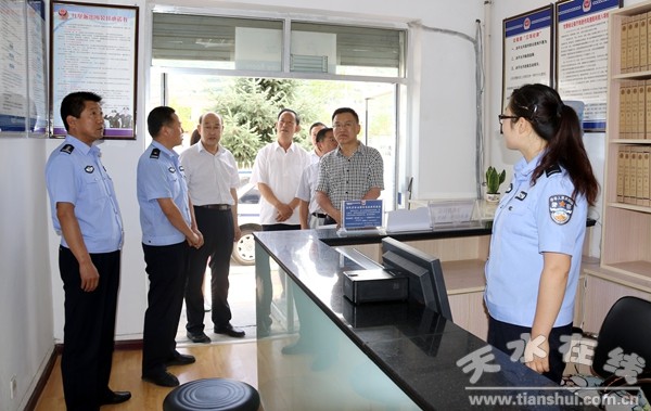 7月14日下午,甘肅省維穩(wěn)辦副主任唐志峰一行深入清水縣調(diào)研督查維穩(wěn)工作。市委政法委副書(shū)記、維穩(wěn)辦主任王德,清水縣委常委、政法委書(shū)記王馬代一同調(diào)研督查。